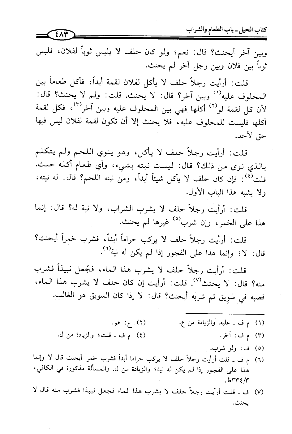 (¬7) ف - قلت أرأيت رجلاً حلف لا يشرب هذا الماء فجعل نبيذا فشرب منه قال لا يحنث.