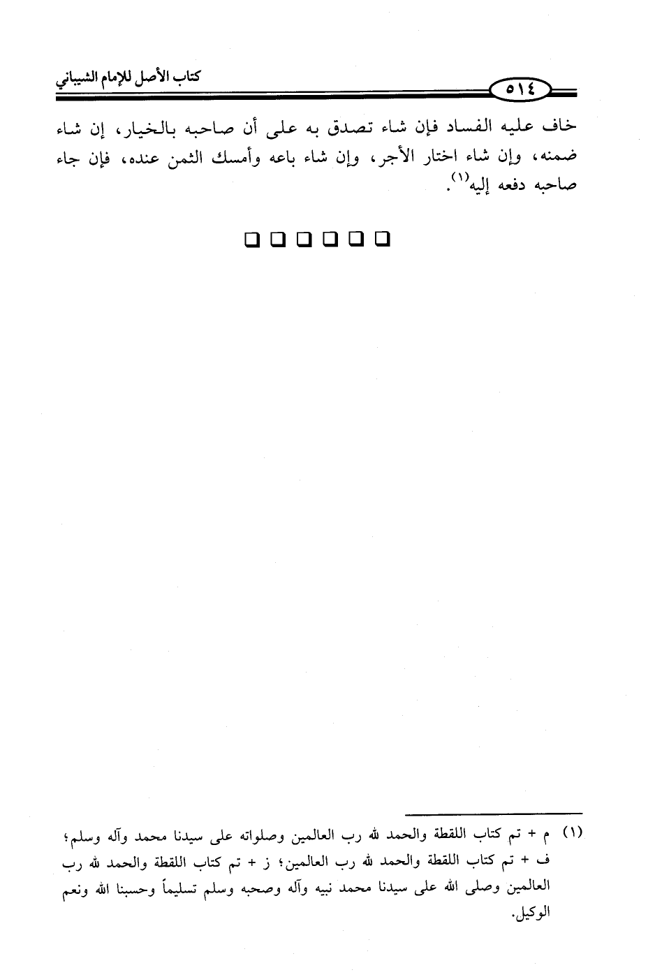 (¬1) م + تم كتاب اللقطة والحمد لله رب العالمين وصلواته على سيدنا محمد وآله وسلم؛ ف + تم كتاب اللقطة والحمد لله رب العالمين؛ ز + تم كتاب اللقطة والحمد لله رب العالمين وصلى الله على سيدنا محمد نبيه وآله وصحبه وسلم تسليماً وحسبنا الله ونعم الوكيل.