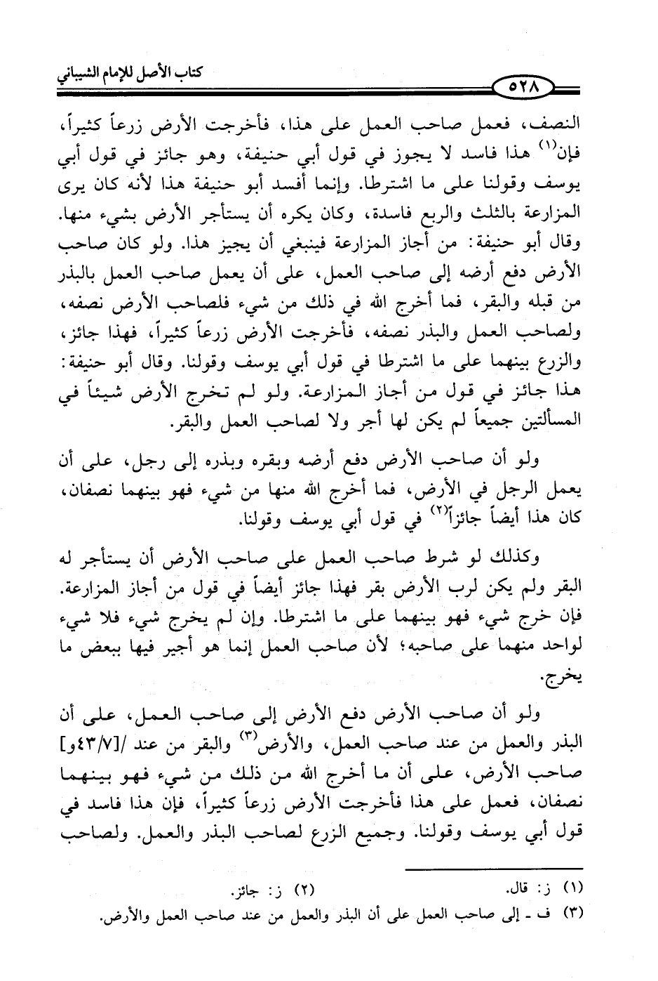 (¬3) ف - إلى صاحب العمل على أن البذر والعمل من عند صاحب العمل والأرض.