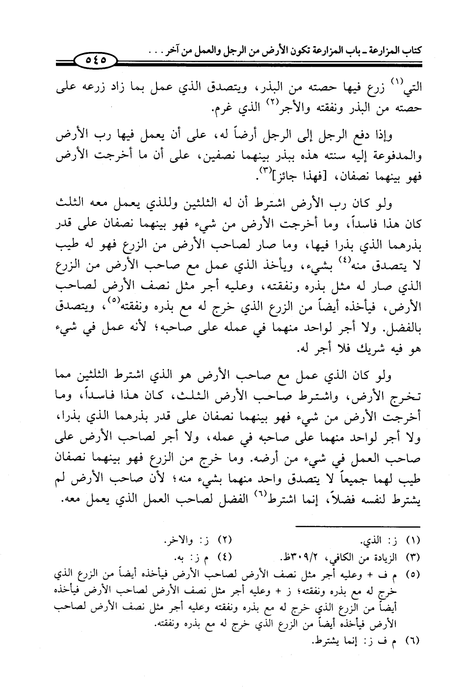 (¬5) م ف + وعليه أجر مثل نصف الأرض لصاحب الأرض فيأخذه أيضاً من الزرع الذي خرجِ له مع بذره ونفقته؛ ز + وعليه أجر مثل نصف الأرض لصاحب الأرض فيأخذه أيضاً من الزرع الذي خرج له مع بذره ونفقته وعليه أجر مثل نصف الأرض لصاحب الأرض فيأخذه أيضاً من الزرع الذي خرج له مع بذره ونفقته.