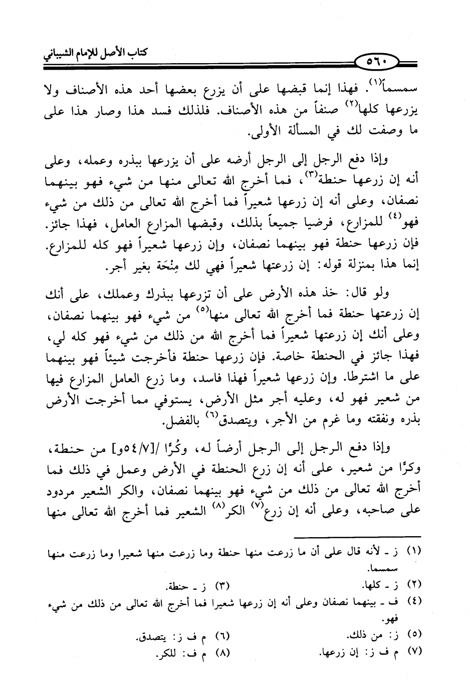 (¬4) ف - بينهما نصفان وعلى أنه إن زرعها شعيرا فما أخرج الله تعالى من ذلك من شيء فهو.