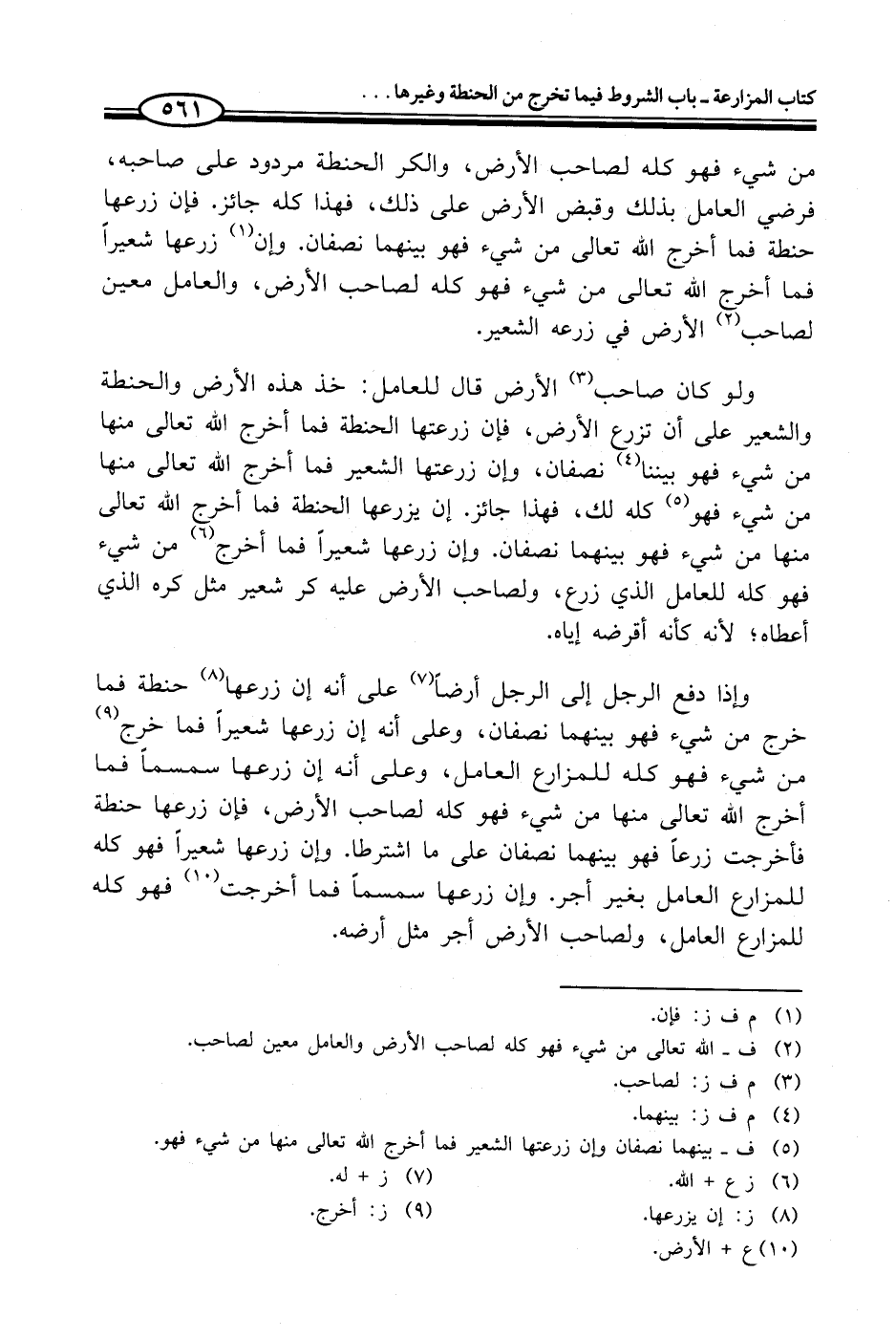 (¬5) ف - بينهما نصفان وإن زرعتها الشعير فما أخرج الله تعالى منها من شيء فهو.