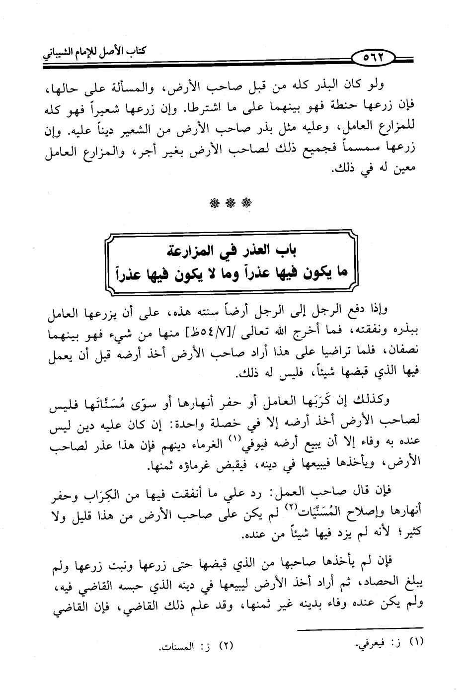 باب العذر في المزارعة ما يكون فيها عذراً وما لا يكون كيها عذراً