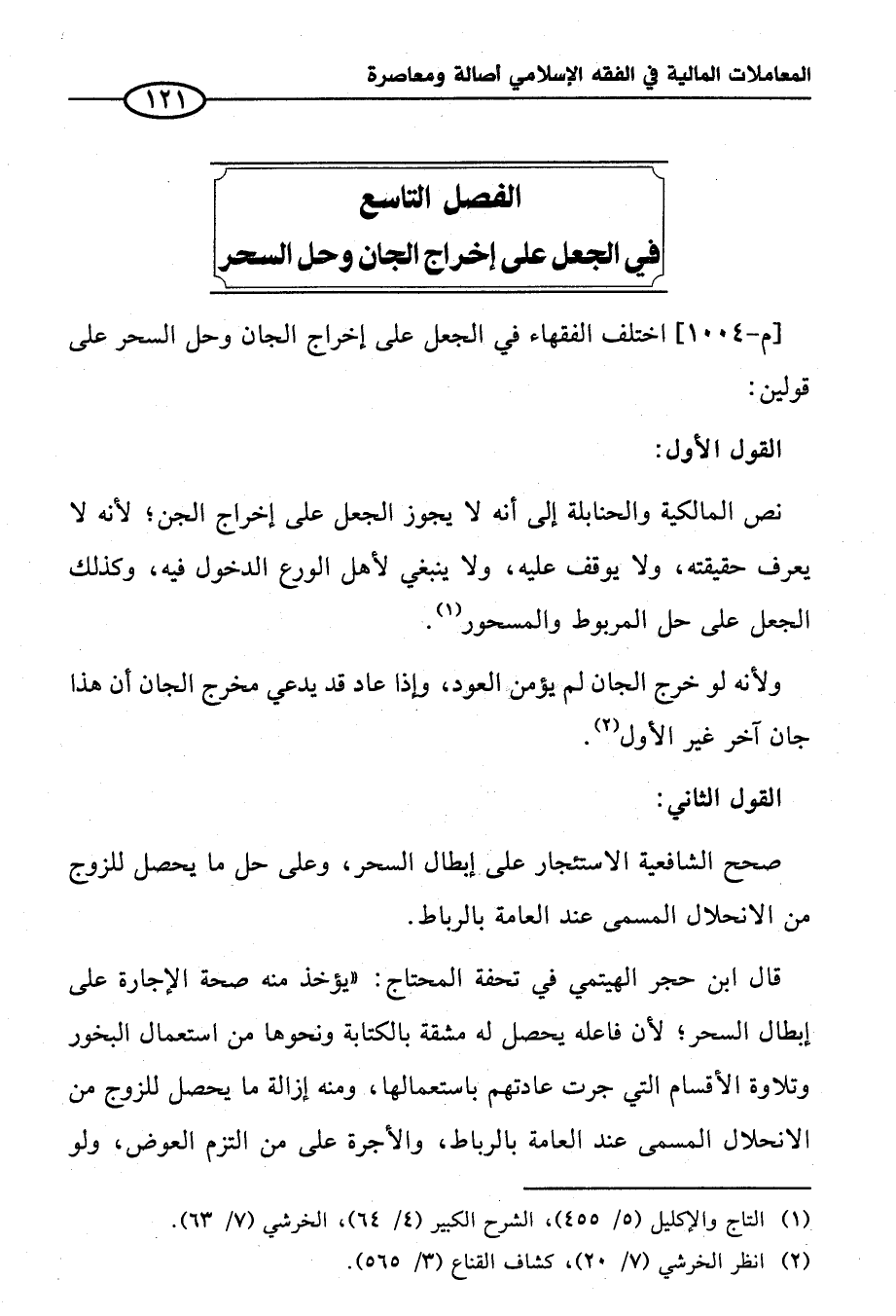الفصل التاسع في الجعل على إخراج الجان وحل السحر