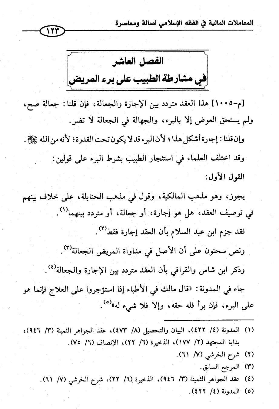 الفصل العاشر في مشارطة الطبيب على برء المريض