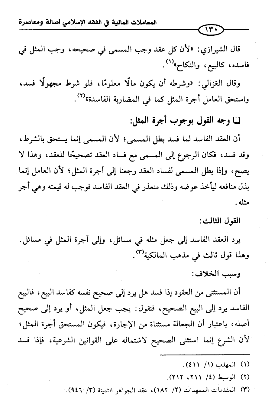 يرد العقد الفاسد إلى جعل مثله في مسائل، وإلى أجرة المثل في مسائل. وهذا قول ثالث في مذهب المالكية (¬٣).