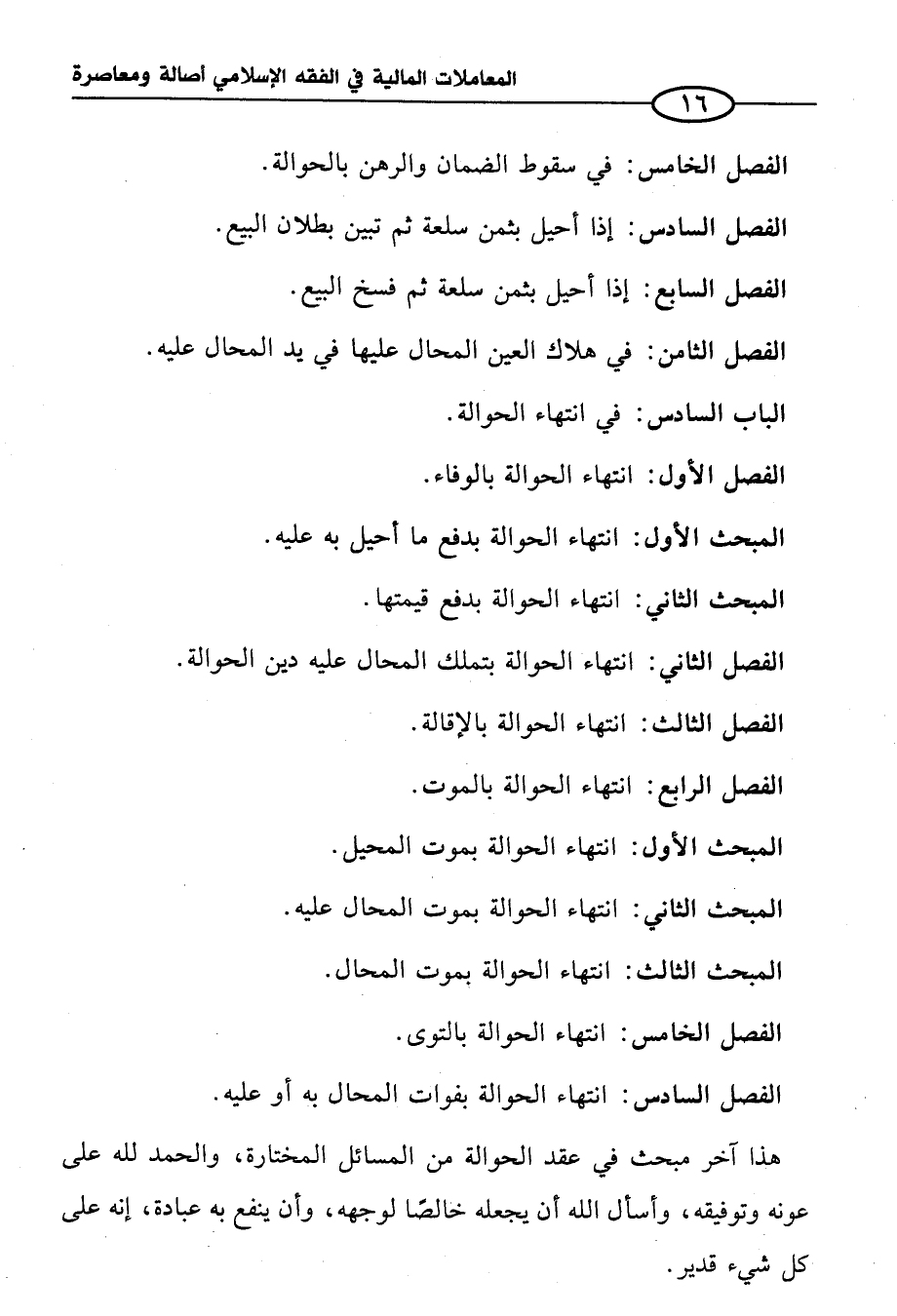 هذا آخر مبحث في عقد الحوالة من المسائل المختارة، والحمد لله على عونه وتوفيقه، وأسأل الله أن يجعله خالصًا لوجهه، وأن ينفع به عبادة، إنه على كل شيء قدير.