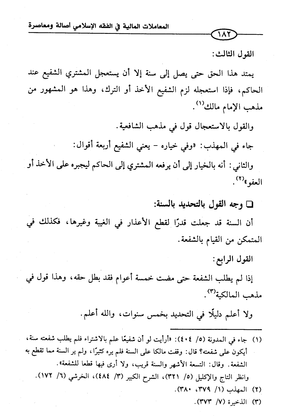 (¬١) جاء في المدونة (٥/ ٤٠٤): "أرأيت لو أن شفيعا علم بالاشتراء فلم يطلب شفعته سنة، أيكون على شفعته؟ قال: وقفت مالكا على السنة فلم يره كثيرًا, ولم ير السنة مما تقطع به الشفعة. وقال: التسعة الأشهر والسنة قريب، ولا أرى فيها قطعا للشفعة".