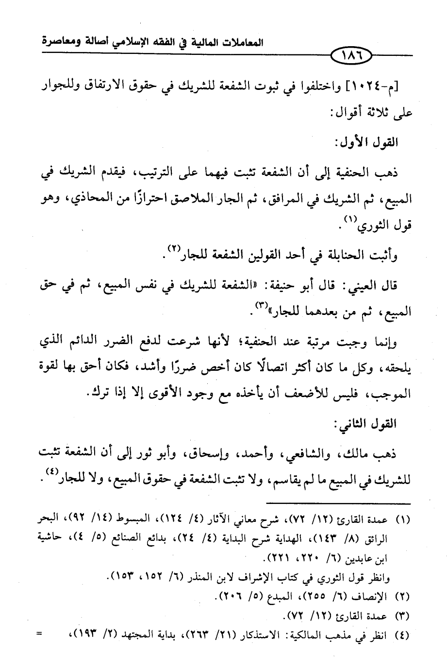 [م - ١٠٢٤] واختلفوا في ثبوت الشفعة للشريك في حقوق الارتفاق وللجوار على ثلاثة أقوال: