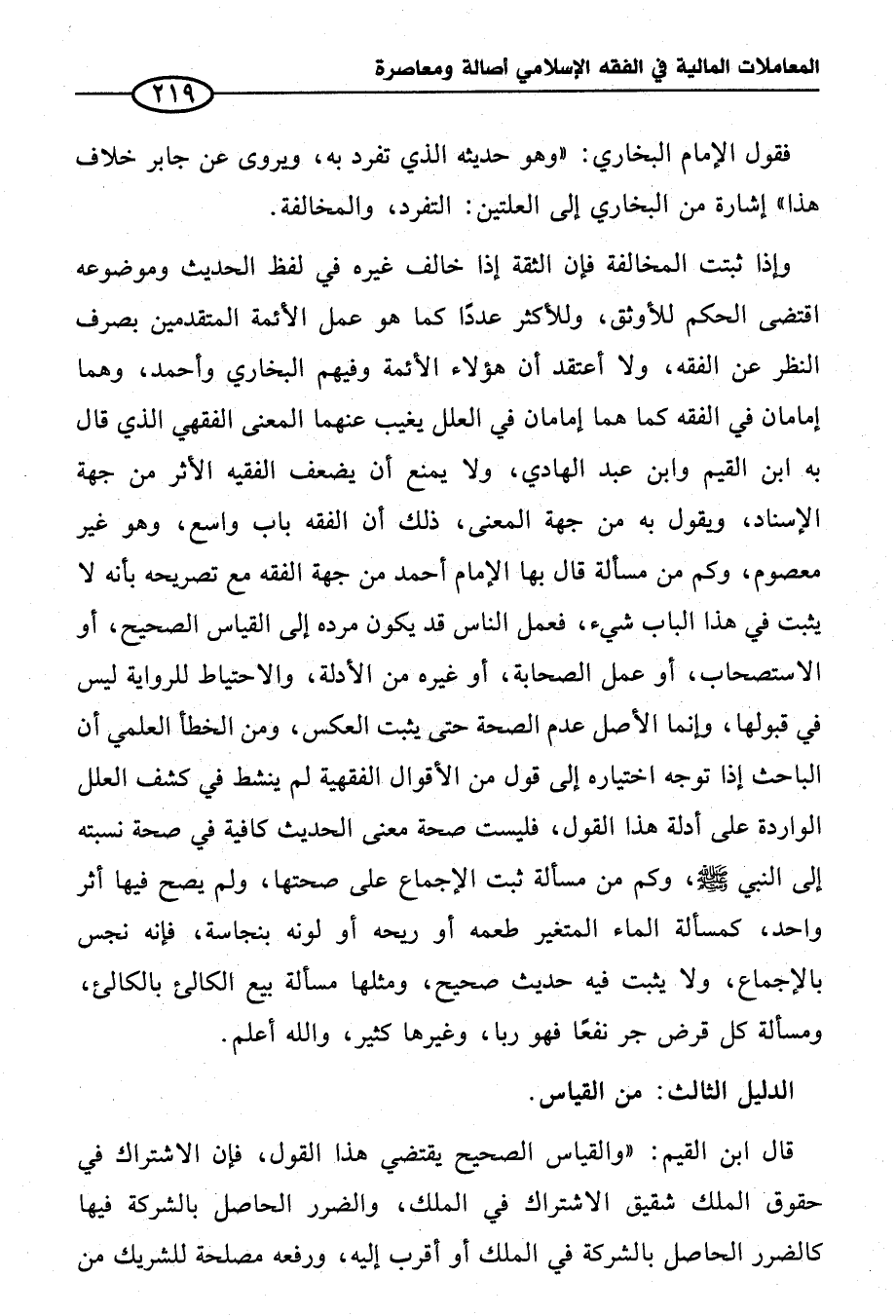 وإذا ثبتت المخالفة فإن الثقة إذا خالف غيره في لفظ الحديث وموضوعه اقتضى الحكم للأوثق، وللأكثر عددًا كما هو عمل الأئمة المتقدمين بصرف النظر عن الفقه، ولا أعتقد أن هؤلاء الأئمة وفيهم البخاري وأحمد، وهما إمامان في الفقه كما هما إمامان في العلل يغيب عنهما المعنى الفقهي الذي قال به ابن القيم وابن عبد الهادي، ولا يمنع أن يضعف الفقيه الأثر من جهة الإسناد، ويقول به من جهة المعنى، ذلك أن الفقه باب واسع، وهو غير معصوم، وكم من مسأله قال بها الإِمام أحمد من جهة الفقه مع تصريحه بأنه لا يثبت في هذا الباب شيء، فعمل الناس قد يكون مرده إلى القياس الصحيح، أو الاستصحاب، أو عمل الصحابة، أو غيره من الأدلة، والاحتياط للرواية ليس في قبولها، وإنما الأصل عدم الصحة حتى يثبت العكس، ومن الخطأ العلمي أن الباحث إذا توجه اختياره إلى قول من الأقوال الفقهية لم ينشط في كشف العلل الواردة على أدلة هذا القول، فليست صحة معنى الحديث كافية في صحة نسبته إلى النبي - صلى الله عليه وسلم -، وكم من مسألة ثبت الإجماع على صحتها, ولم يصح فيها أثر واحد، كمسألة الماء المتغير طعمه أو ريحه أو لونه بنجاسة، فإنه نجس بالإجماع، ولا يثبت فيه حديث صحيح، ومثلها مسألة بيع الكالئ بالكالئ، ومسألة كل قرض جر نفعا فهو ربا، وغيرها كثير، والله أعلم.