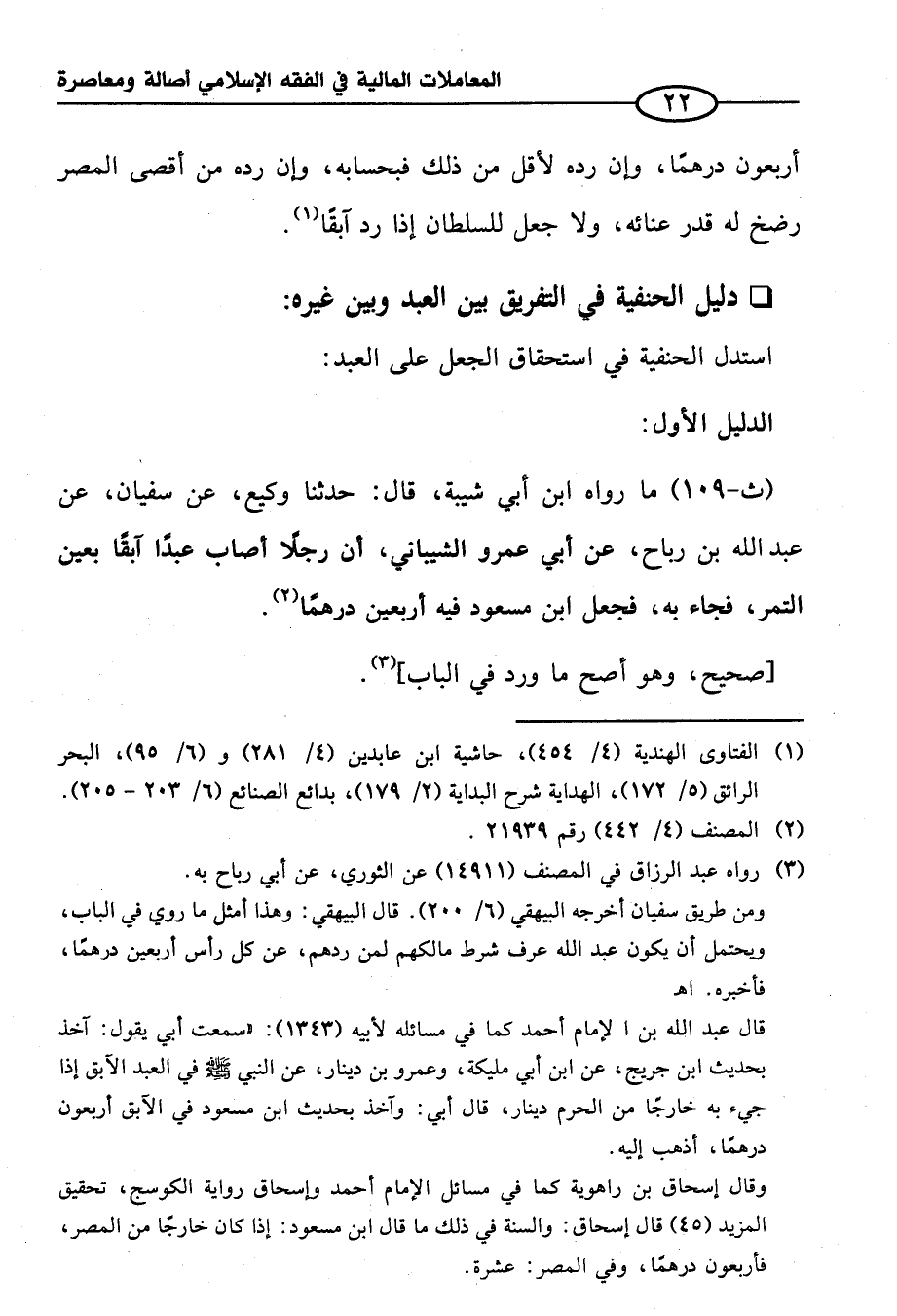 ومن طريق سفيان أخرجه البيهقي (٦/ ٢٠٠). قال البيهقي: وهذا أمثل ما روي في الباب، ويحتمل أن يكون عبد الله عرف شرط مالكهم لمن ردهم، عن كل رأس أربعين درهمًا، فأخبره. اهـ