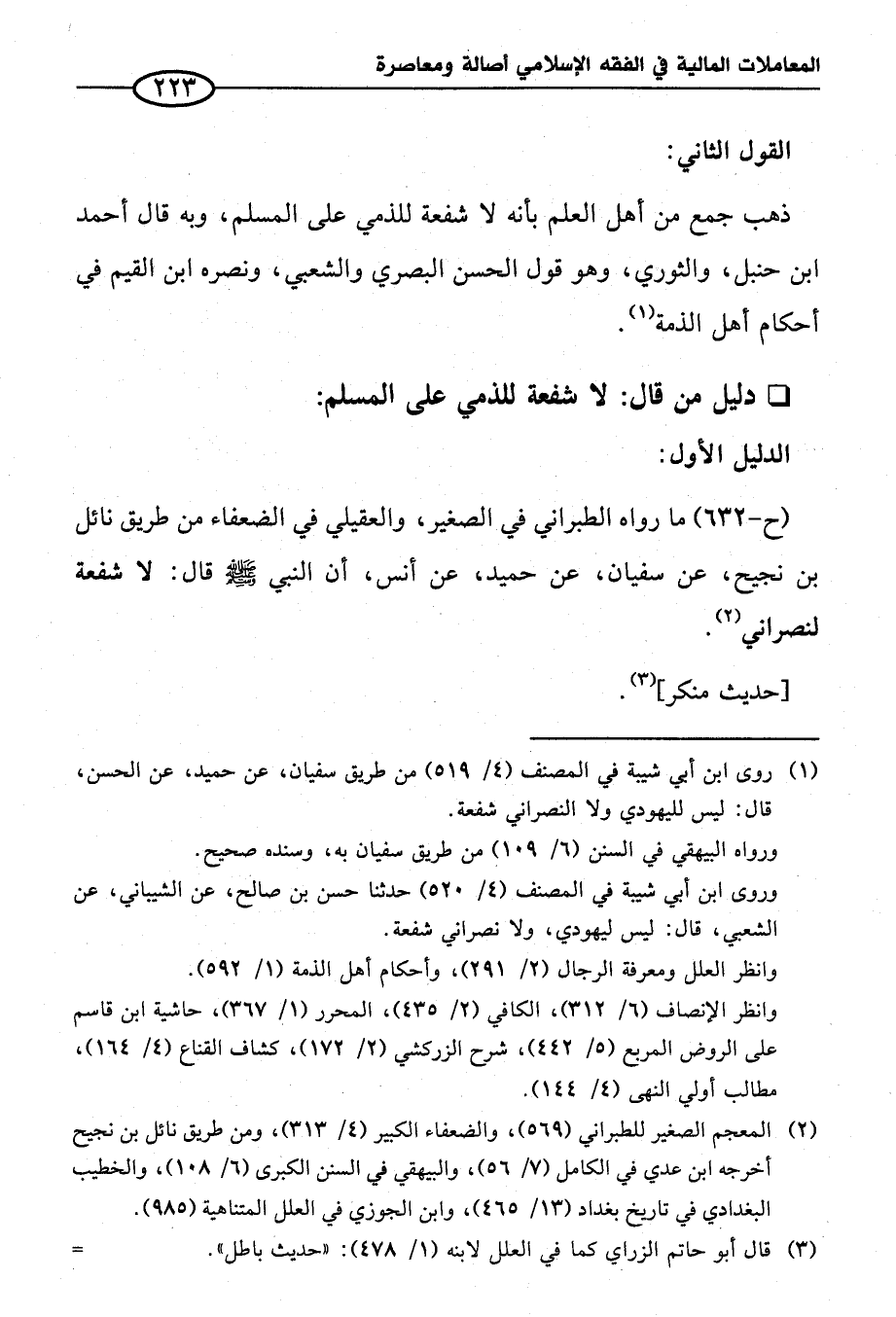 (ح-٦٣٢) ما رواه الطبراني في الصغير, والعقيلي في الضعفاء من طريق نائل بن نجيح، عن سفيان، عن حميد، عن أنس، أن النبي - صلى الله عليه وسلم - قال: لا شفعة لنصراني (¬٢).