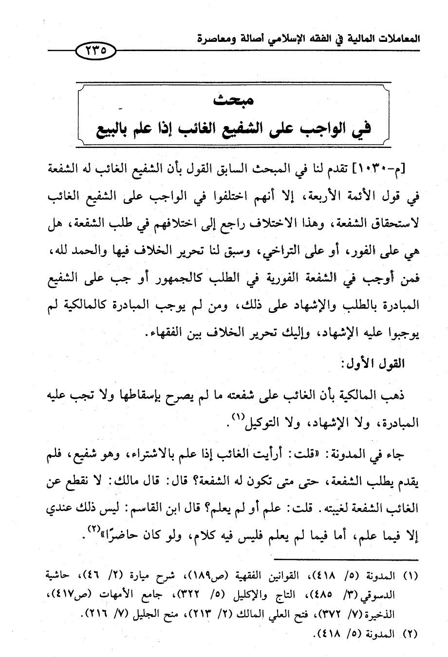 مبحث في الواجب على الشفيع الغائب إذا علم بالبيع