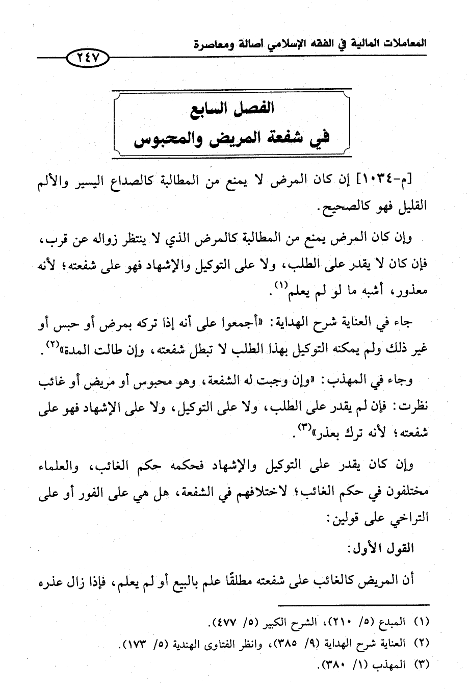 الفصل السابع في شفعة المريض والمحبوس