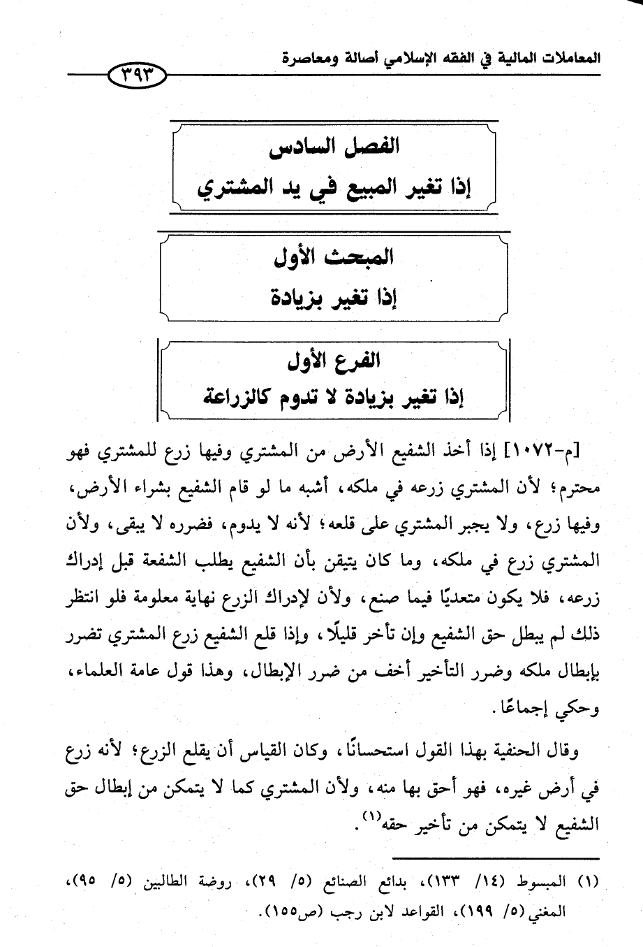 الفرع الأول إذا تغير بزيادة لا تدوم كالزراعة