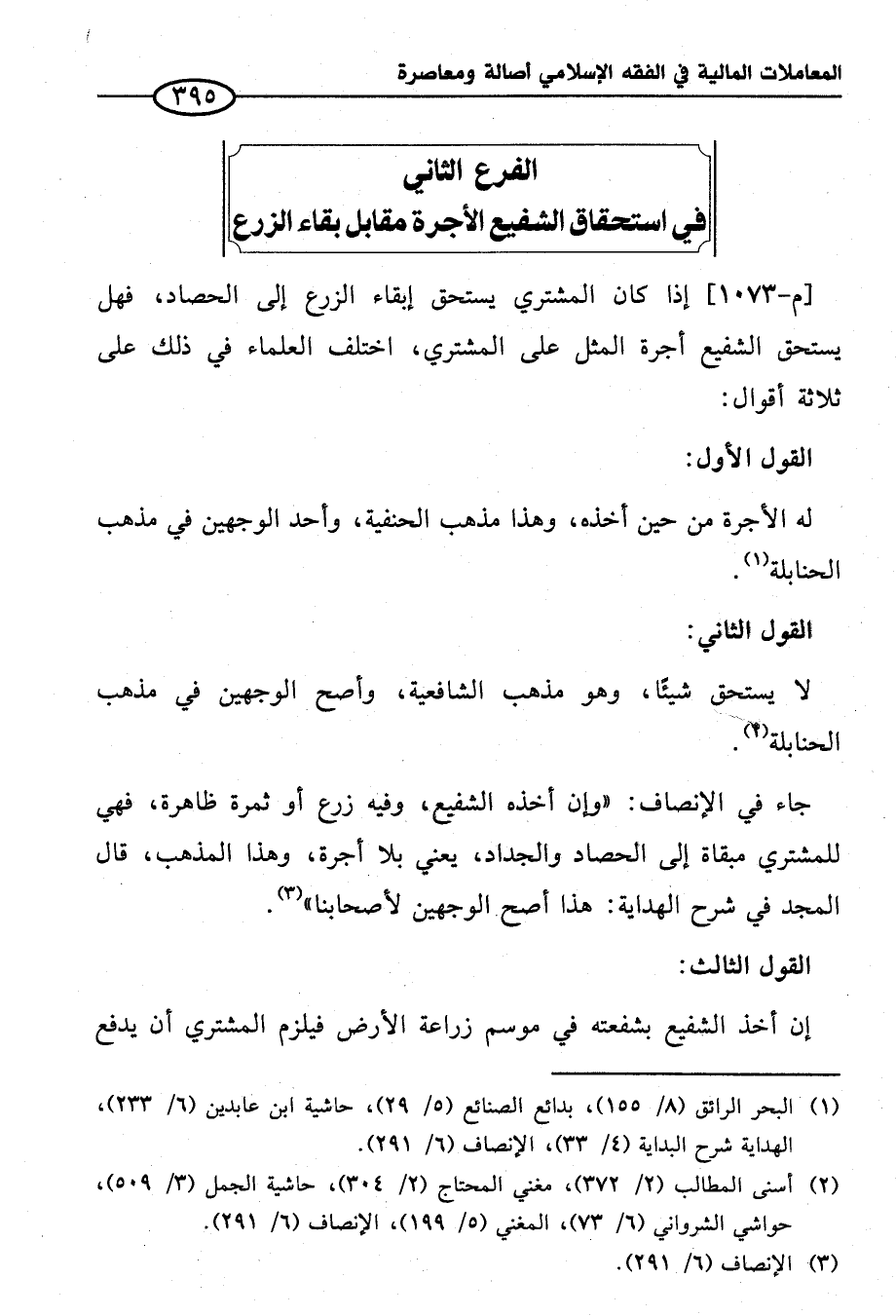 الفرع الثاني في استحقاق الشفيع الأجرة مقابل بقاء الزرع