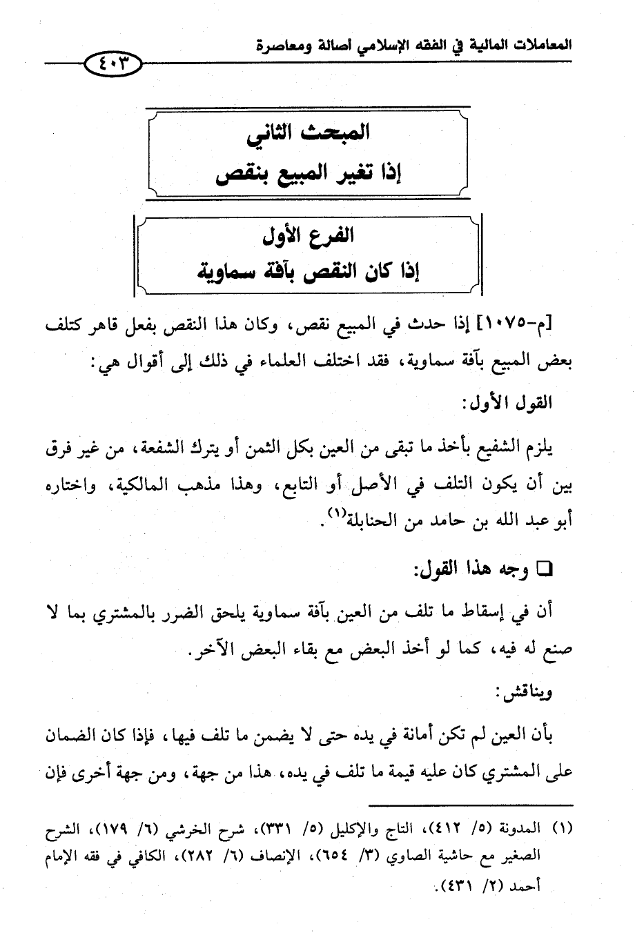 الفرع الأول إذا كان النقص بآفة سماوية