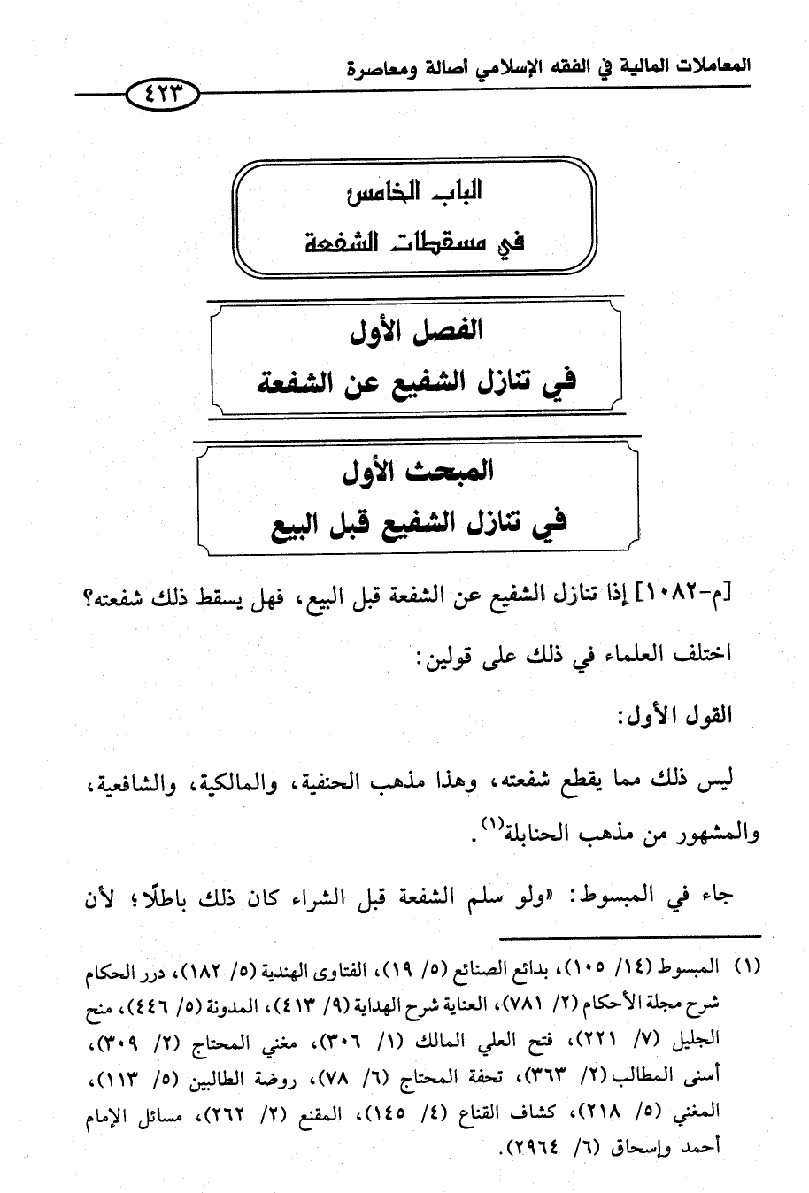 الباب الخامس في مسقطات الشفعة