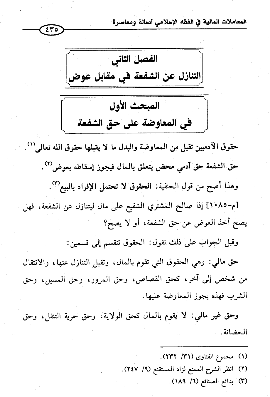 المبحث الأول في المعاوضة على حق الشفعة