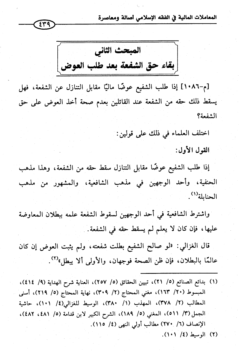 المبحث الثاني بقاء حق الشفعة بعد طلب العوض