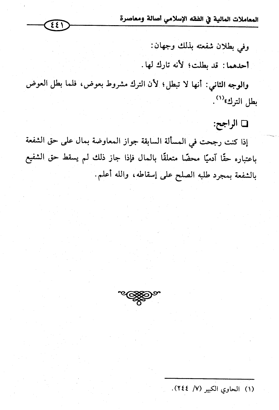 (¬١) الحاوي الكبير (٧/ ٢٤٤).