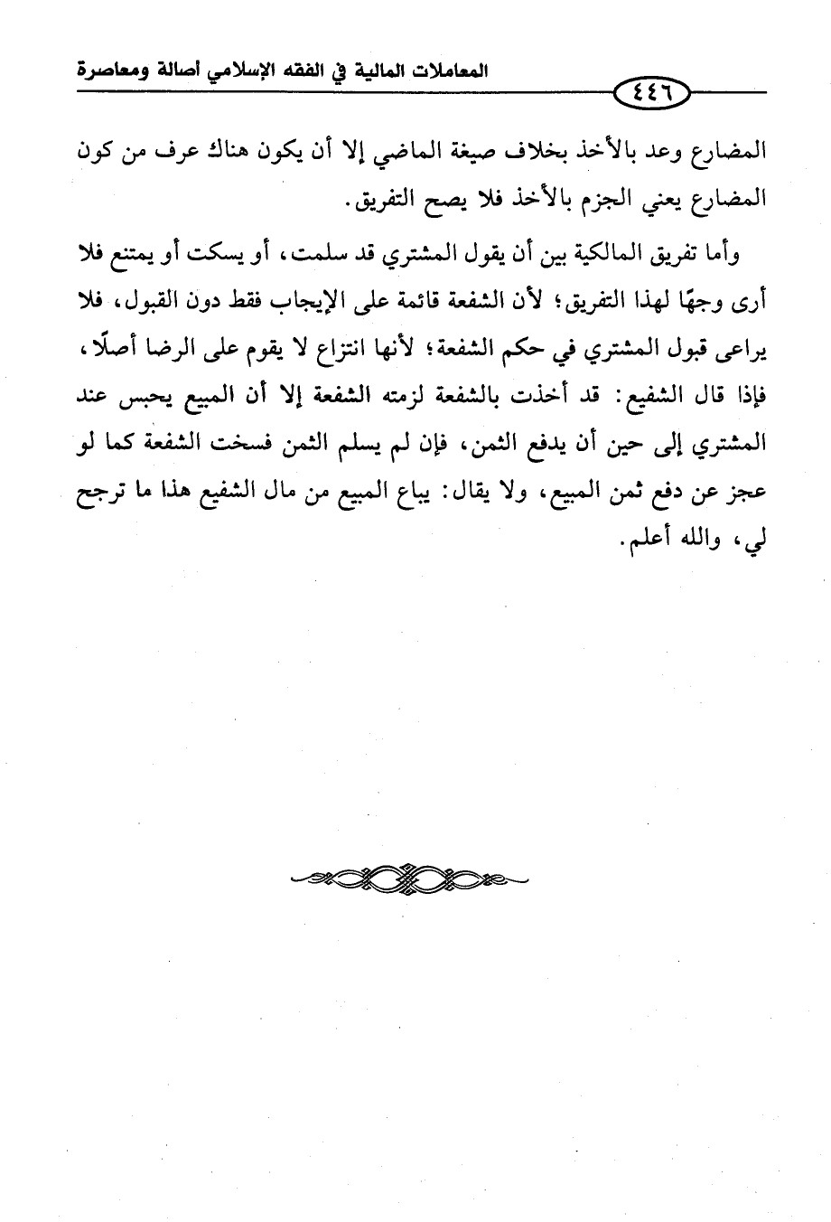وأما تفريق المالكية بين أن يقول المشتري قد سلمت، أو يسكت أو يمتنع فلا أرى وجهًا لهذا التفريق؛ لأن الشفعة قائمة على الإيجاب فقط دون القبول، فلا يراعى قبول المشتري في حكم الشفعة؛ لأنها انتزاع لا يقوم على الرضا أصلًا، فإذا قال الشفيع: قد أخذت بالشفعة لزمته الشفعة إلا أن المبيع يحبس عند المشتري إلى حين أن يدفع الثمن، فإن لم يسلم الثمن فسخت الشفعة كما لو عجز عن دفع ثمن المبيع، ولا يقال: يباع المبيع من مال الشفيع هذا ما ترجح لي، والله أعلم.