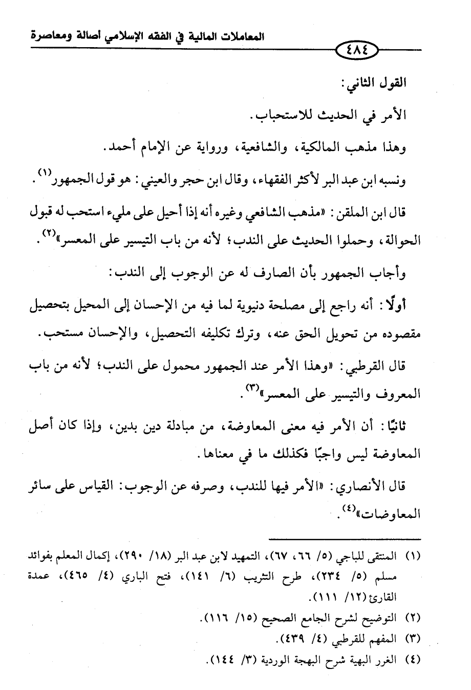 قال الأنصاري: "الأمر فيها للندب، وصرفه عن الوجوب: القياس على سائر المعاوضات" (¬٤).