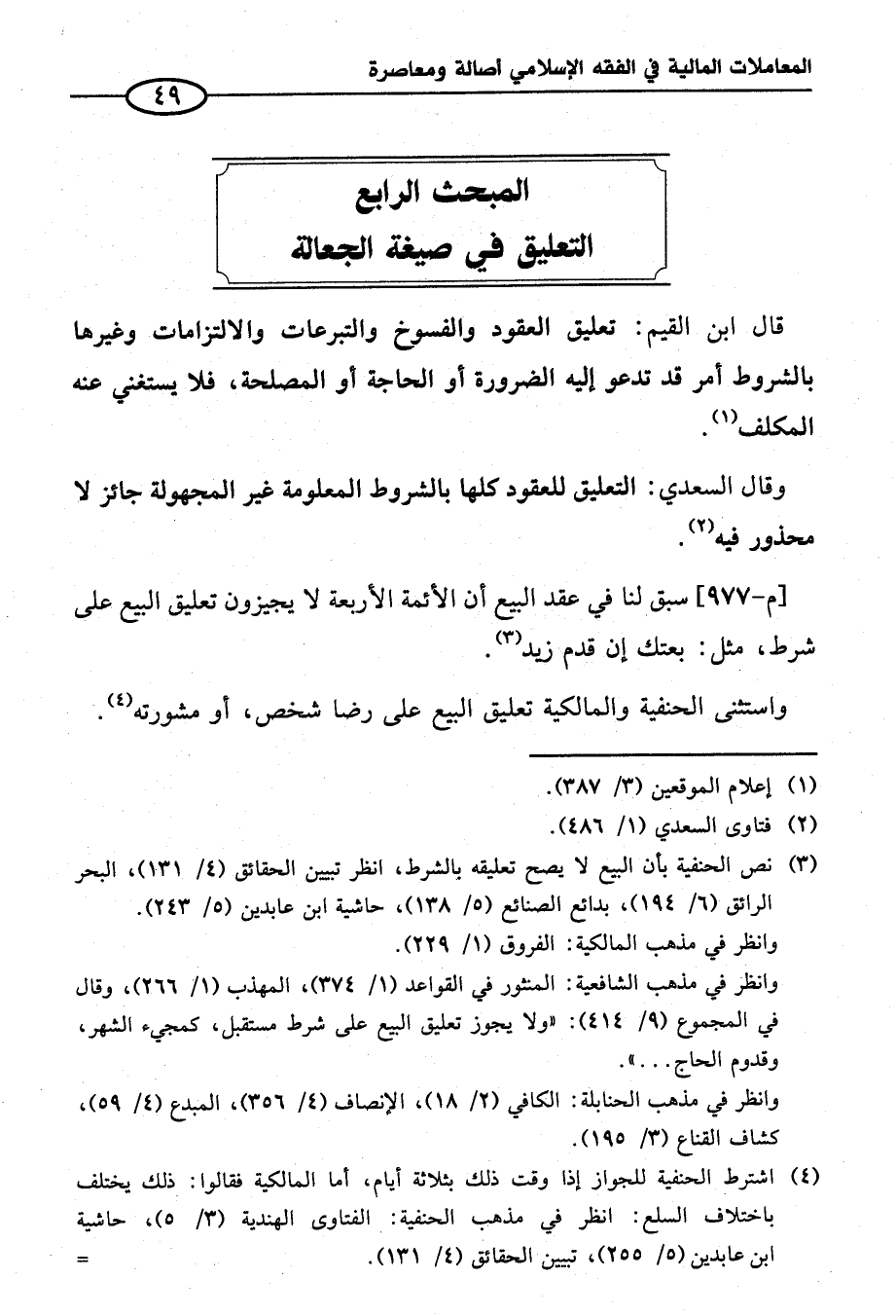 (¬٣) نص الحنفية بأن البيع لا يصح تعليقه يالشرط، انظر تبيين الحقائق (٤/ ١٣١)، البحر الرائق (٦/ ١٩٤)، بدائع الصنائع (٥/ ١٣٨)، حاشية ابن عابدين (٥/ ٢٤٣).