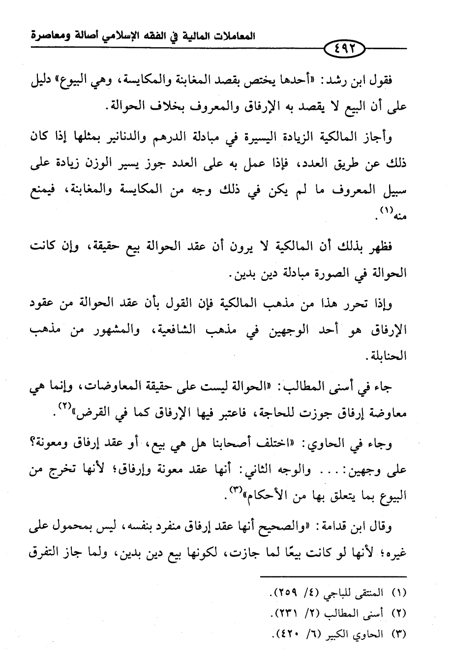 فظهر بذلك أن المالكية لا يرون أن عقد الحوالة بيع حقيقة، وإن كانت الحوالة في الصورة مبادلة دين بدين.