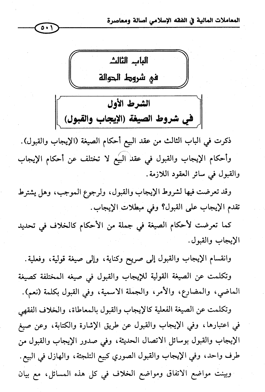 وتكلمت عن الصيغة القولية للإيجاب والقبول في صيغه المختلفة كصيغة الماضي، والمضارع، والأمر، والجملة الاسمية، وفي القبول بكلمة (نعم).