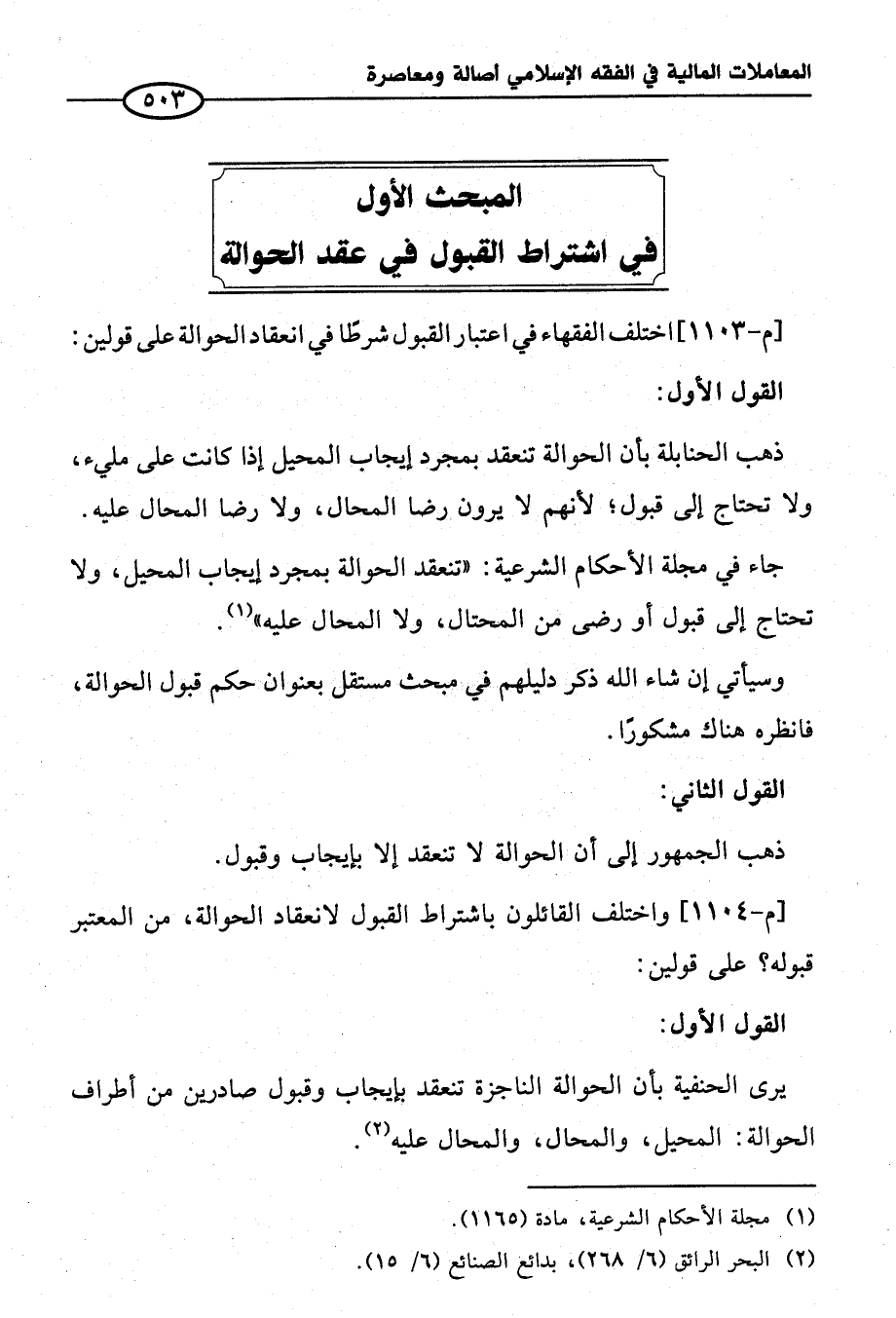 المبحث الأول في اشتراط القبول في عقد الحوالة