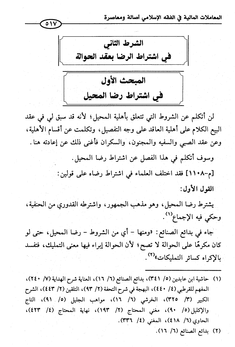 وسوف أتكلم في هذا الفصل عن اشتراط رضا المحيل.