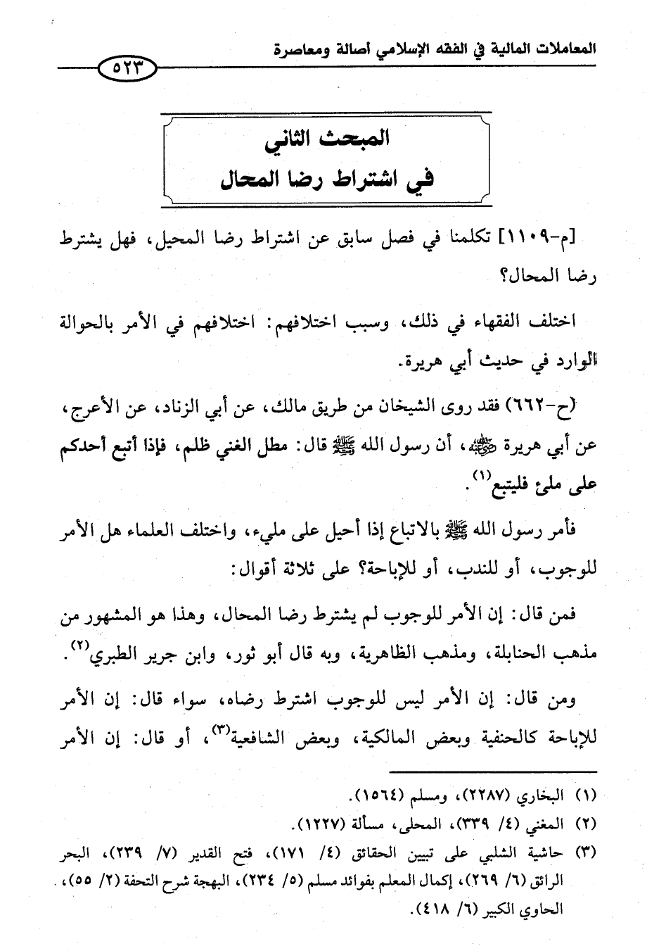 فمن قال: إن الأمر للوجوب لم يشترط رضا المحال، وهذا هو المشهور من مذهب الحنابلة، ومذهب الظاهرية، وبه قال أبو ثور، وابن جرير الطبري (¬٢).
