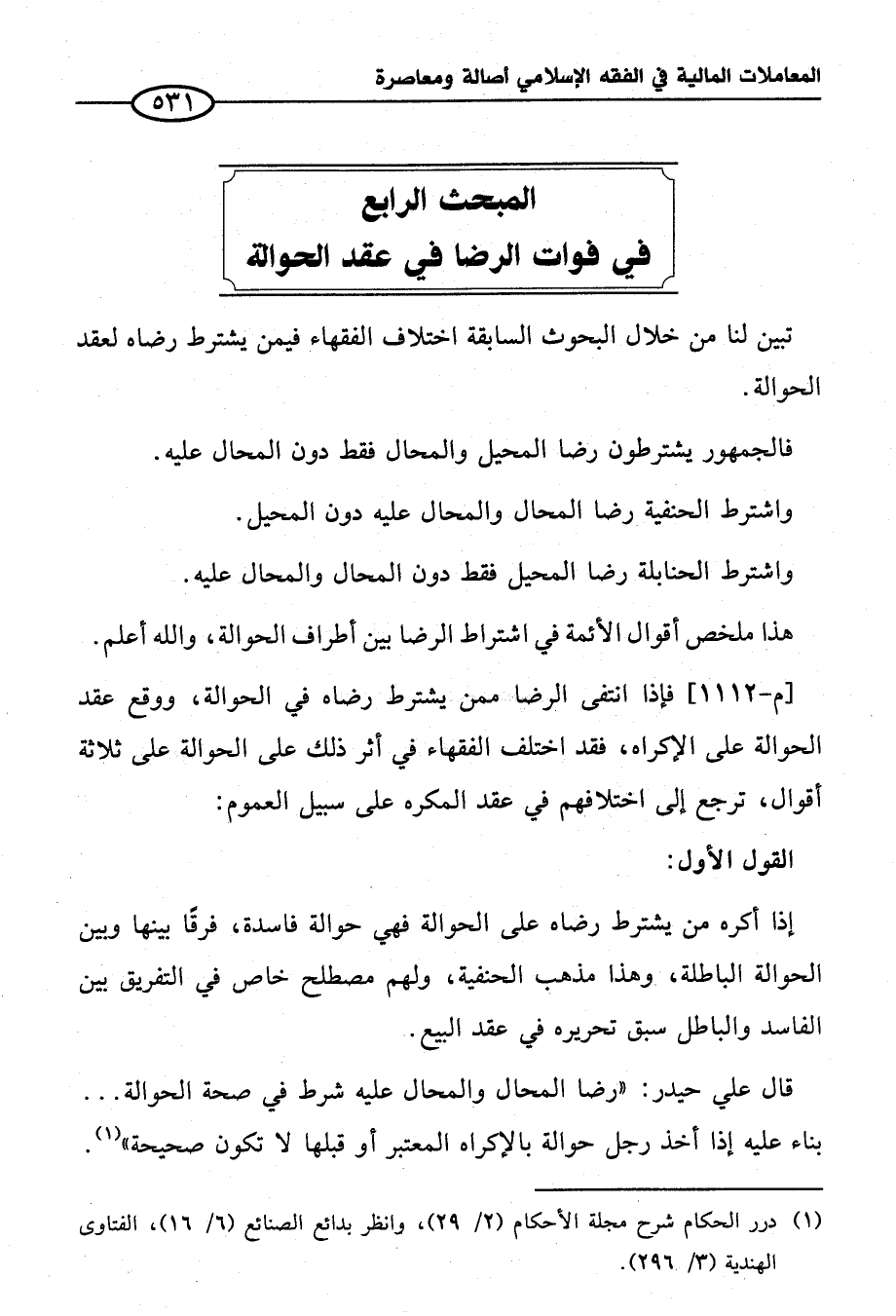 المبحث الرابع في فوات الرضا في عقد الحوالة