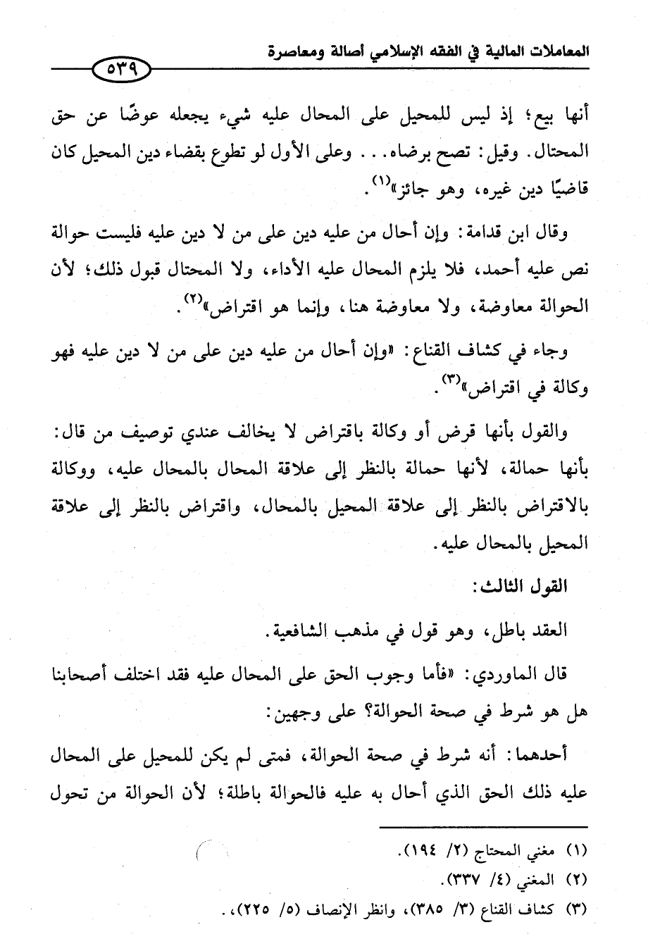 وجاء في كشاف القناع: "وإن أحال من عليه دين على من لا دين عليه فهو وكالة في اقتراض" (¬٣).