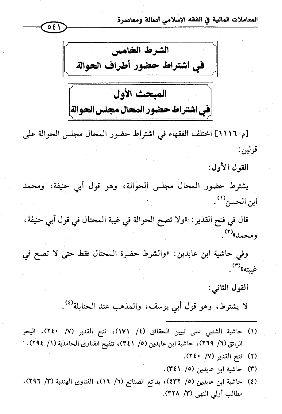 الشرط الخامس في اشتراط حضور أطراف الحوالة