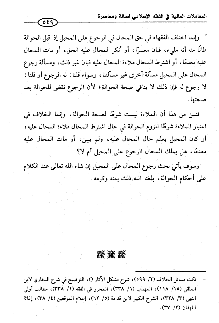وسوف يأتي بحث رجوع المحال على المحيل إن شاء الله تعالى عند الكلام على أحكام الحوالة، بلغنا الله ذلك بمنه وكرمه.