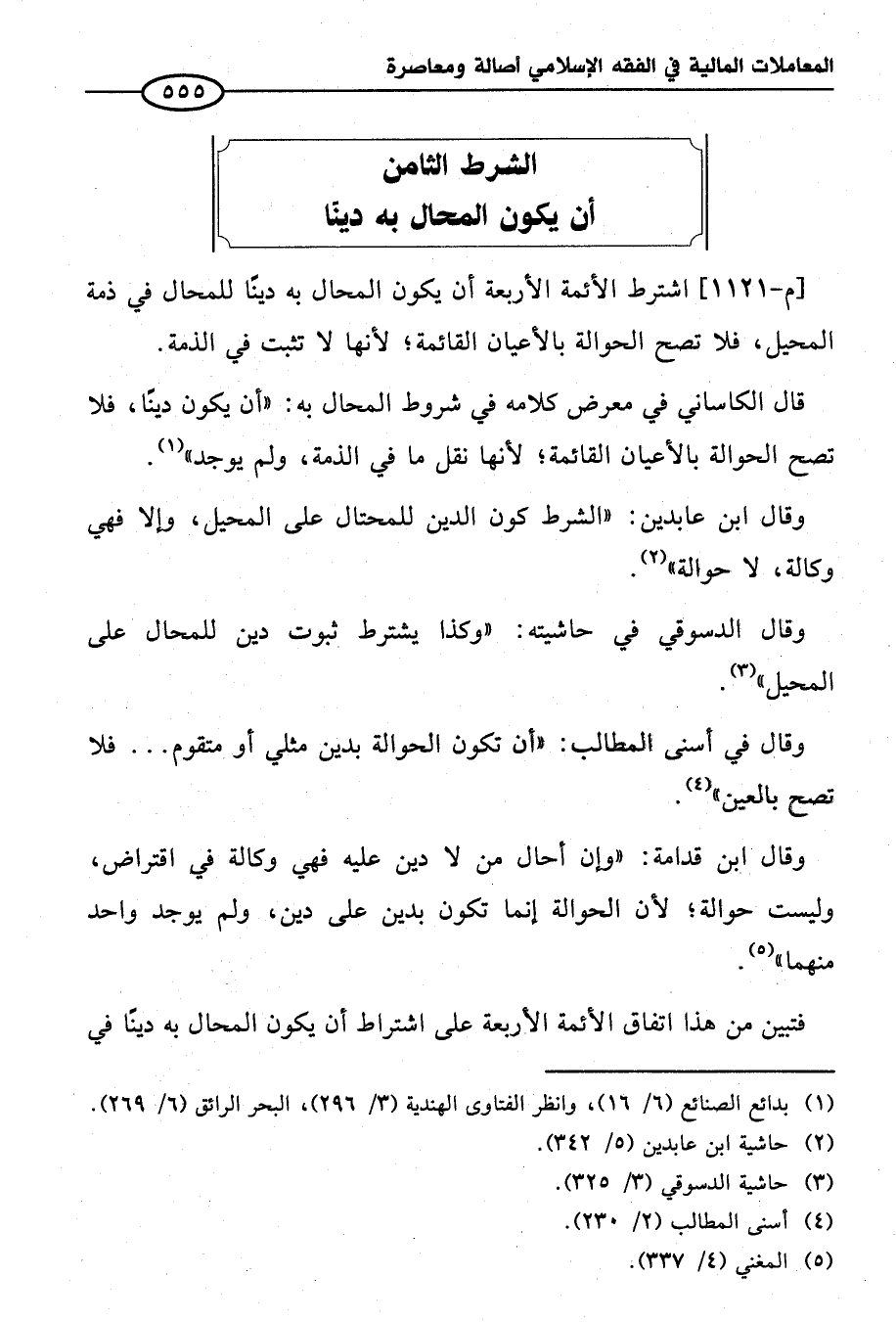 الشرط الثامن أن يكون المحال به دينًا