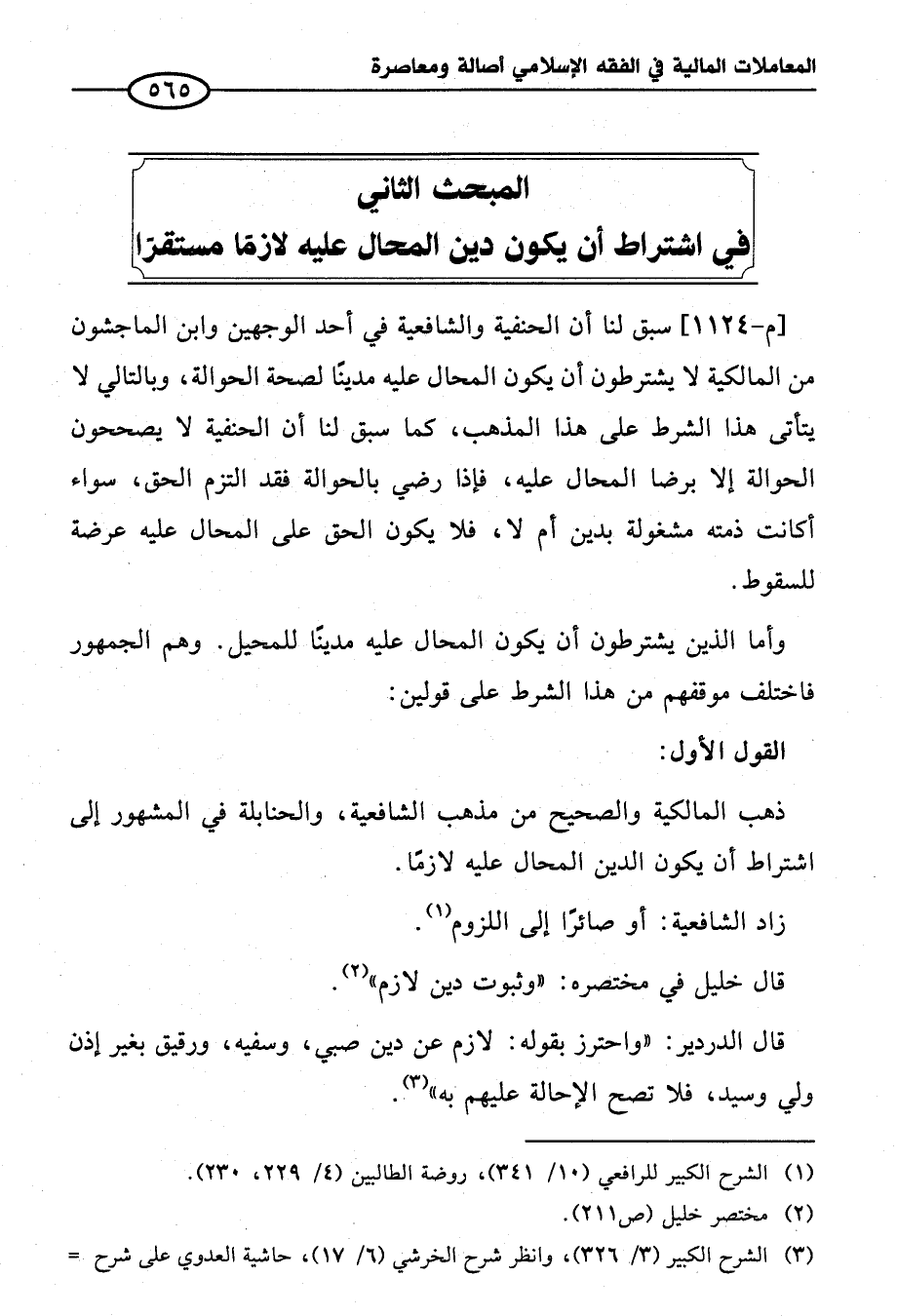 المبحث الثاني في اشتراط أن يكون دين المحال عليه لازمًا مستقرًا