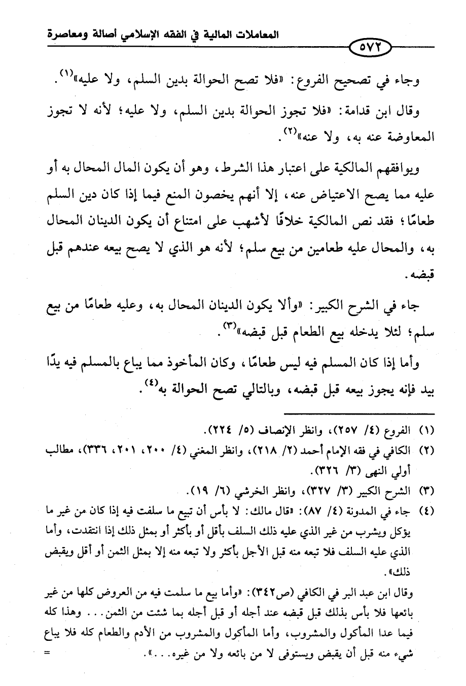 (¬٤) جاء في المدونة (٤/ ٨٧): "قال مالك: لا بأس أن تبيع ما سلفت فيه إذا كان من غير ما يؤكل ويشرب من غير الذي عليه ذلك السلف بأقل أو بأكثر أو بمثل ذلك إذا انتقدت، وأما الذي عليه السلف فلا تبعه منه قبل الأجل بأكثر ولا تبعه منه إلا بمثل الثمن أو أقل ويقبض ذلك".
