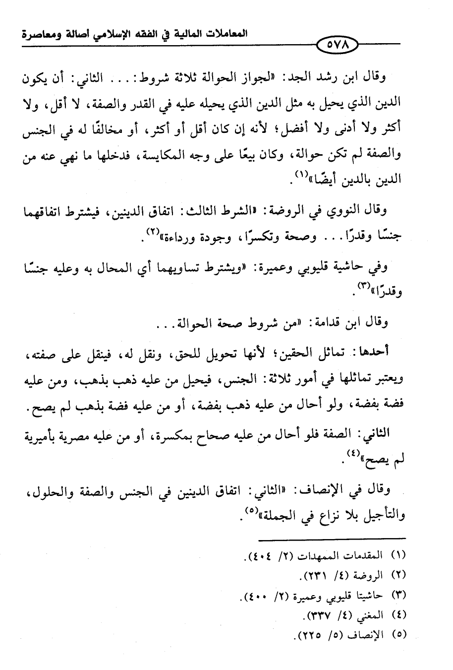 وفي حاشية قليوبي وعميرة: "ويشترط تساويهما أي المحال به وعليه جنسًا وقدرًا" (¬٣).