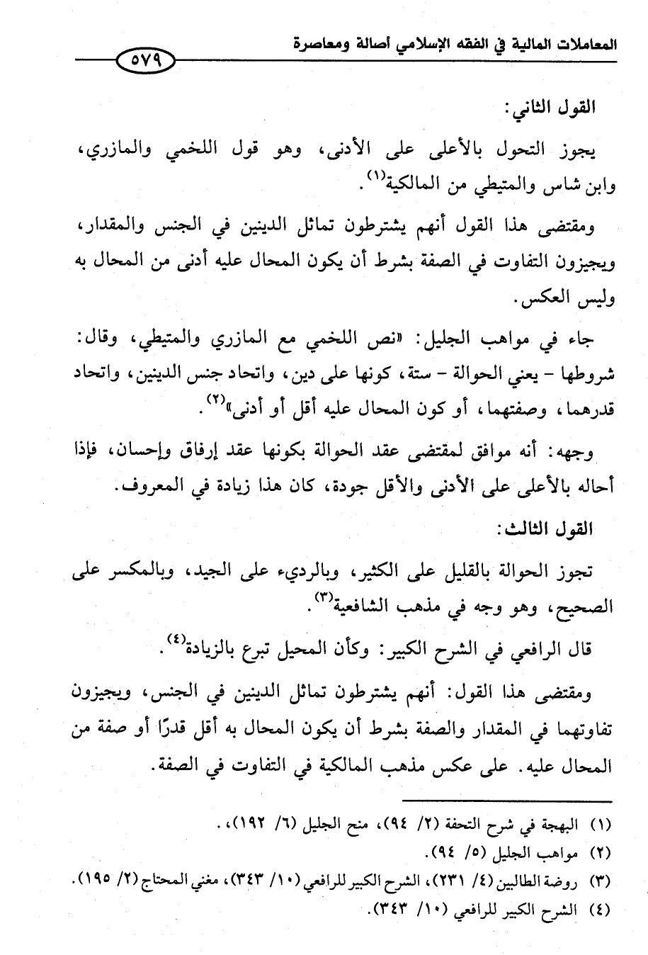 ومقتضى هذا القول أنهم يشترطون تماثل الدينين في الجنس والمقدار، ويجيزون التفاوت في الصفة بشرط أن يكون المحال عليه أدنى من المحال به وليس العكس.