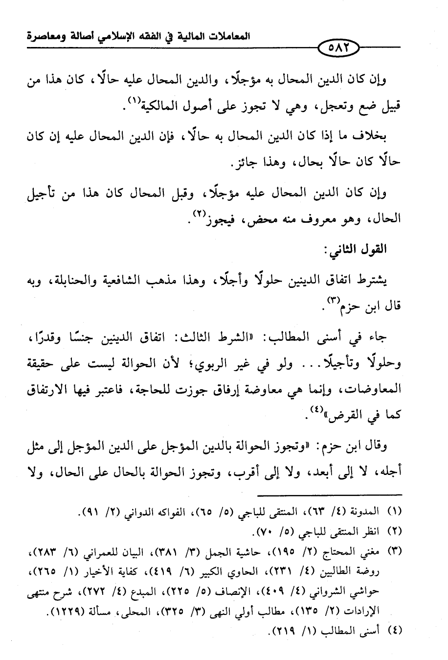 يشترط اتفاق الدينين حلولًا وأجلاً، وهذا مذهب الشافعية والحنابلة، وبه قال ابن حزم (¬٣).