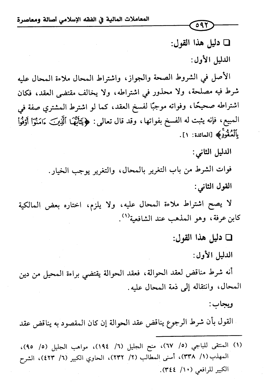 القول بأن شرط الرجوع يناقض عقد الحوالة إن كان المقصود به يناقض عقد