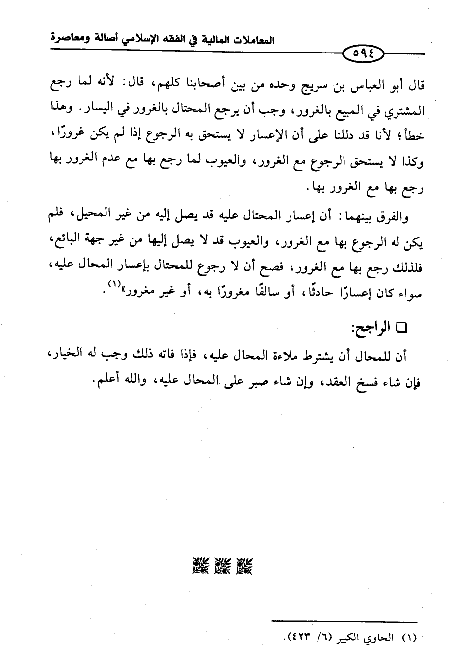 (¬١) الحاوي الكبير (٦/ ٤٢٣).
