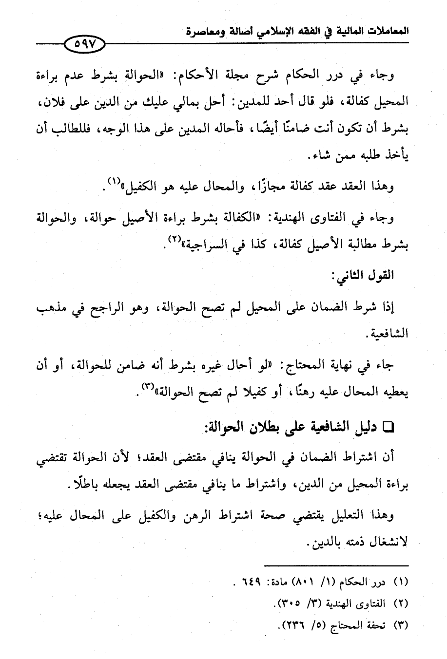 وهذا العقد عقد كفالة مجازًا، والمحال عليه هو الكفيل" (¬١).