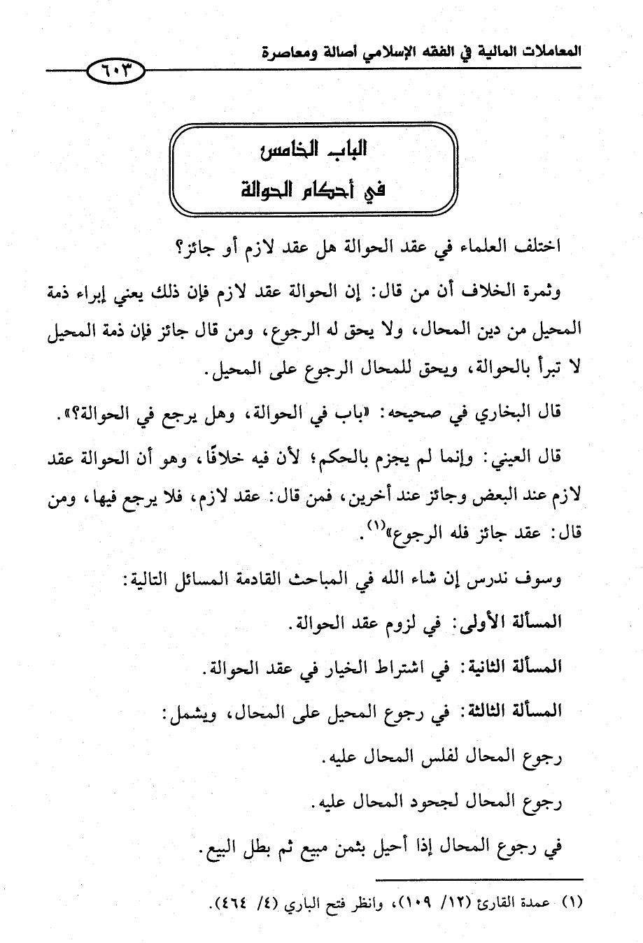 الباب الخامس في أحكام الحوالة