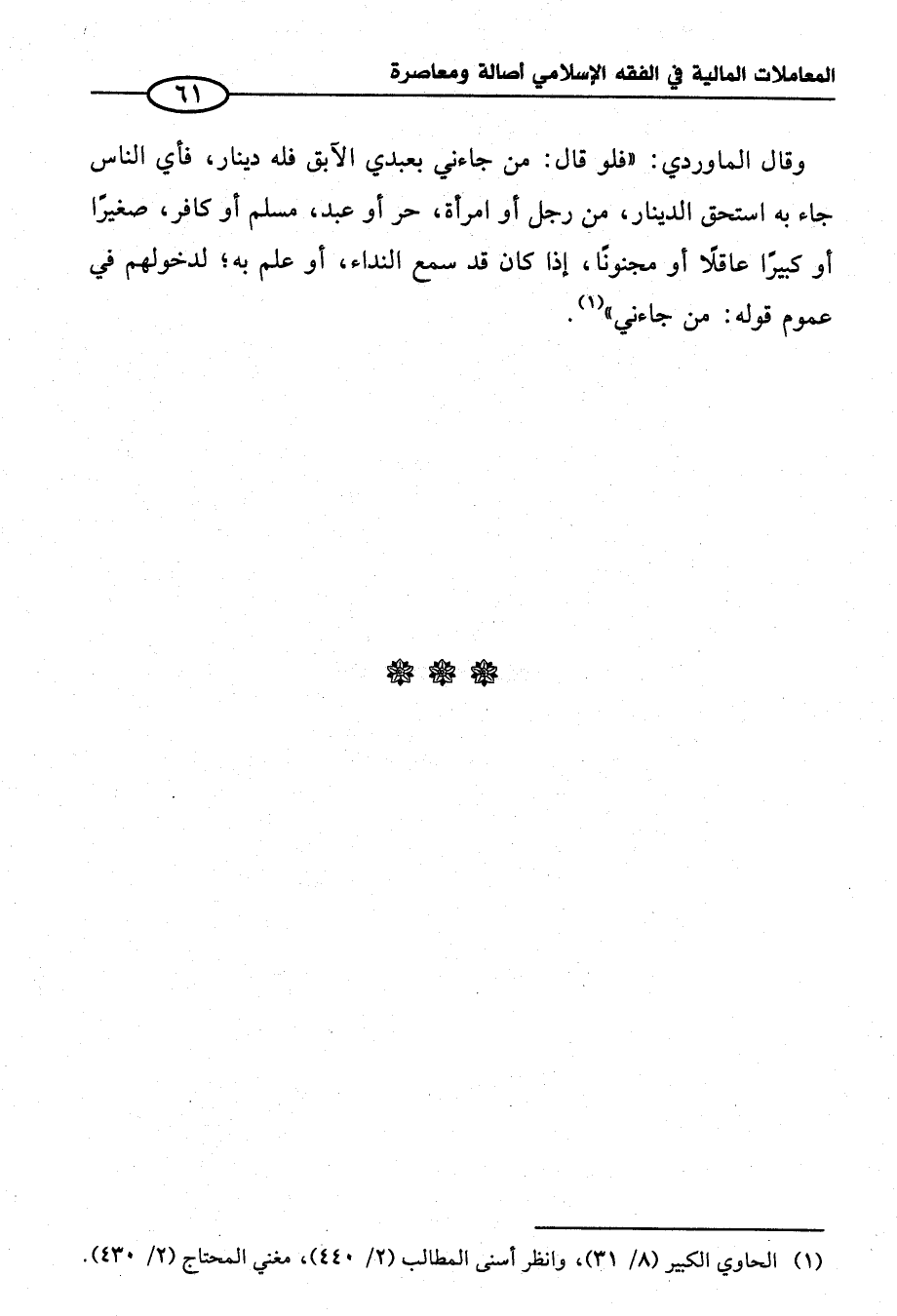 (¬١) الحاوي الكبير (٨/ ٣١)، وانظر أسنى المطالب (٢/ ٤٤٠)، مغني المحتاج (٢/ ٤٣٠).