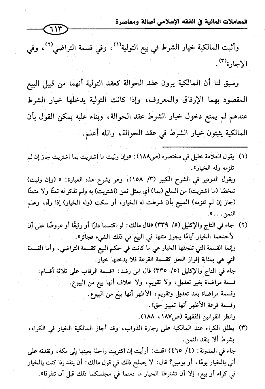 (¬٣) يطلق الكراء عند المالكية على إجارة الدواب، وقد أجاز المالكية الخيار في الكراء، بشرط ألا ينقد الثمن.