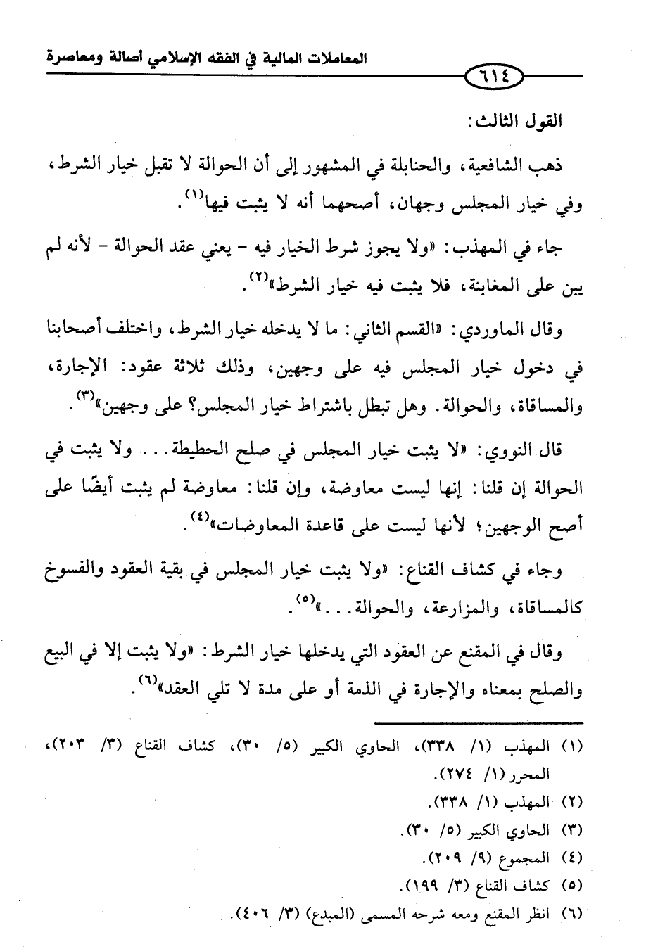 وجاء في كشاف القناع: "ولا يثبت خيار المجلس في بقية العقود والفسوخ كالمساقاة، والمزارعة، والحوالة ... " (¬٥).